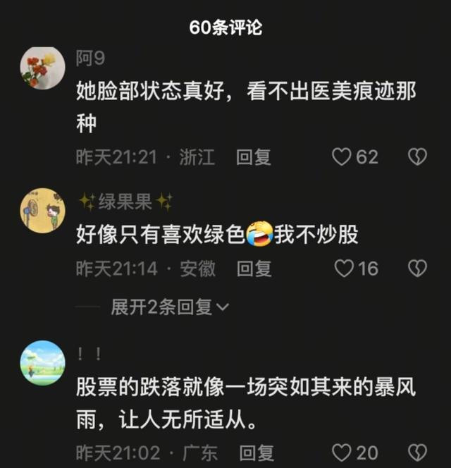 这种心态在很多投资者中并不常见。许多人在股市波动的瞬间就会感到恐慌,急于抛售手中的股票。贾静雯的态度更偏向于一种长期投资的理念,借鉴了股神巴菲特的投资哲学——不轻易卖出。网友们对此纷纷调侃,认为这是一种“股票玄学”,强调心理安慰的重要性。有人甚至开玩笑说,这种心态可以让人“绿股不看就能变红”,仿佛只要不去关注股市的波动,财富自由指日可待。这样的讨论不仅让投资者感到轻松,也引发了关于股市心理战的深入思考。